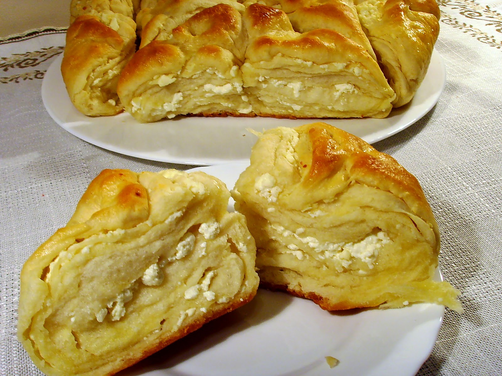 Поздравления за страхотната рецепта.Видях че се е коментирало съотношението на продуктите и искам да споделя моя опит-тази вечер направих този страхотен тутманик-използвах брашно на ССОФИЯ МЕЛ-(пакет от 2 кг)-от килограма който бях претеглила след замесването ми остана около 150 гр-всички други продукти ги спазих стриктно-само вместо масло-смесих по 50 гр-св.мас,олио,масло и маргарин.Другото което направих е че замесих отначало тестото в хлебопекарната(щот съм мързелива булка)сложих първо разбитите яйца,после шупналата мая пуснах програмата за тесто и като се смесиха добавих 2-те чаши брашно със солта и постепенно добавях по малко от брашното докато взе да се отлепя от стените на контейнера,тогава извадих контейнера(без да изключвам програмата)извадих тестото,доомесих си го на ръка,махнах бъркалките и върнах тестото в контейнера и в машината.Оставих го да си удвои обема и изключих машината.При оформянето на тутманика тестото стоеше на конци и беше много пухкаво.От там нататък спазвах стриктно указанията на рецептата-получи се страхотно вкусен и много пухкав тутманик.Определено ще присъства често на нашата трапеза.Благодаря още веднъж за чудесната рецепта.Съжалявам че няма как да кача снимка на моя тутманик за да видите страхотния резултат.