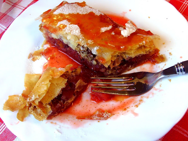 Похлупваме с подходящ капак, или покриваме с алуминиево фолио съда - и печем в предварително загрята на 200С или 180С с вентилатор фурна.