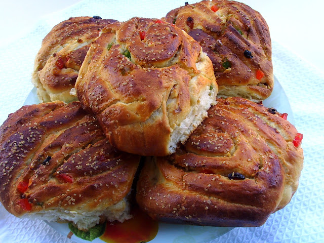 Рецептата и последователността при приготвянето е почти като при Козуначените рулца - само с някои леки заменки...