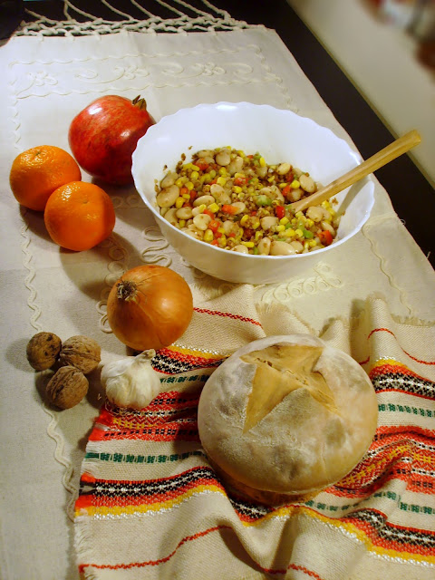 Смесваме солата с брашното и добавяме постепенно, докато се получи меко тесто.
