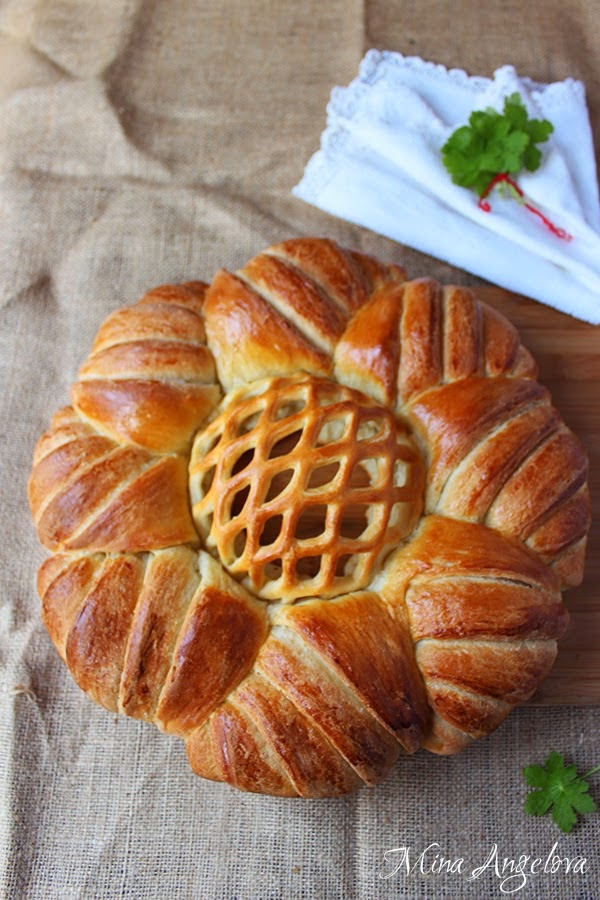 *** От изрязаното тесто можем да изрежем допълнително листенца, цветенца, пеперудки или да сътворим някакви плетеници, които да поставим в основата около розетката, но и без допълнителни детайли, питката си е достатъчно ефектна ;) (ама пък съм и скромна?!)