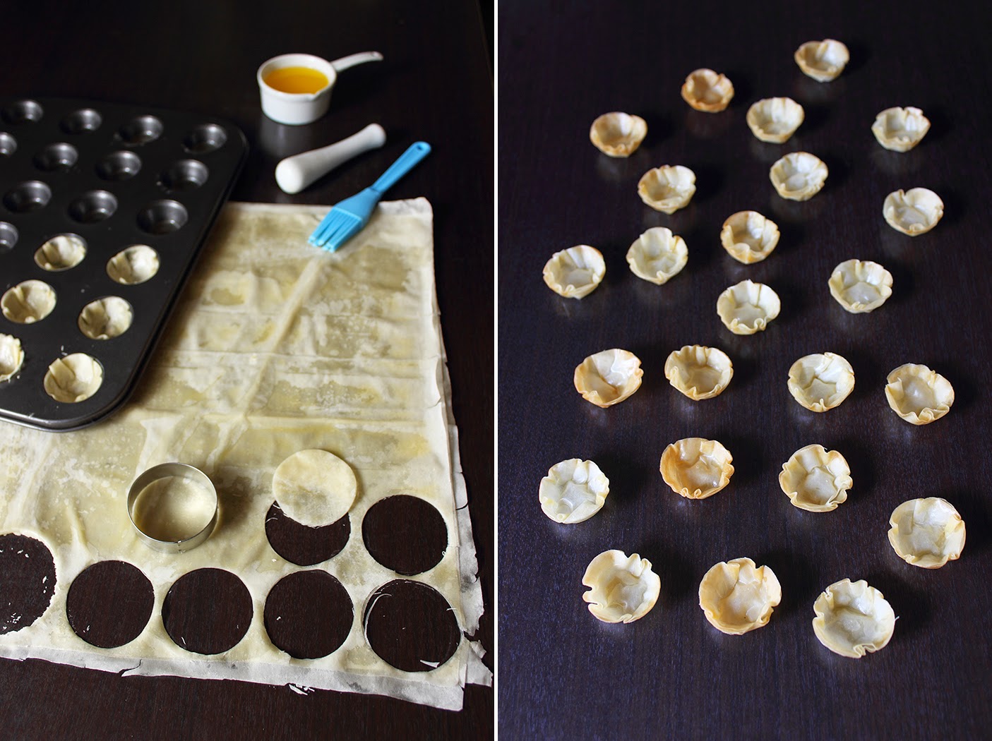Печете в предварително подгрята до 220С или 200С с вентилатор фурна в продължение на 10-15 минути, или докато бутер тестото се разлисти и се запече до златисто-кафяво.
