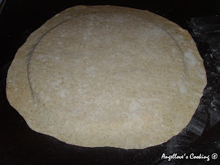 Using a rolling pin, roll thin crust, about 2-2.5 inches larger than the diameter of the pan which would be used for baking the pizza in and transfer the crust with the baking paper (or in a well greased) pan.